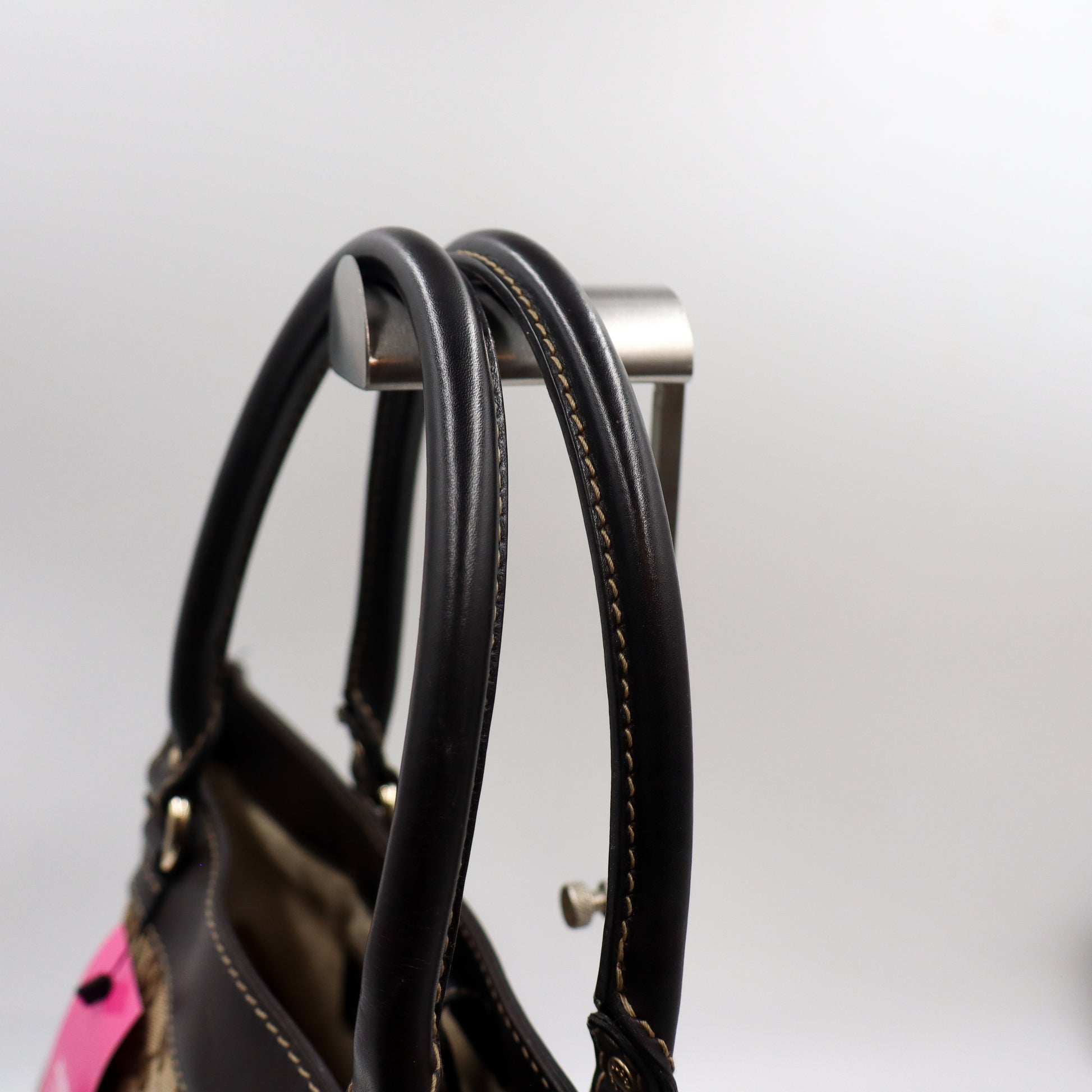 Guter Gebrauchszustand. Leichte Verfärbung und Verschmutzungen sichtbar. Abnutzungen am Leder.