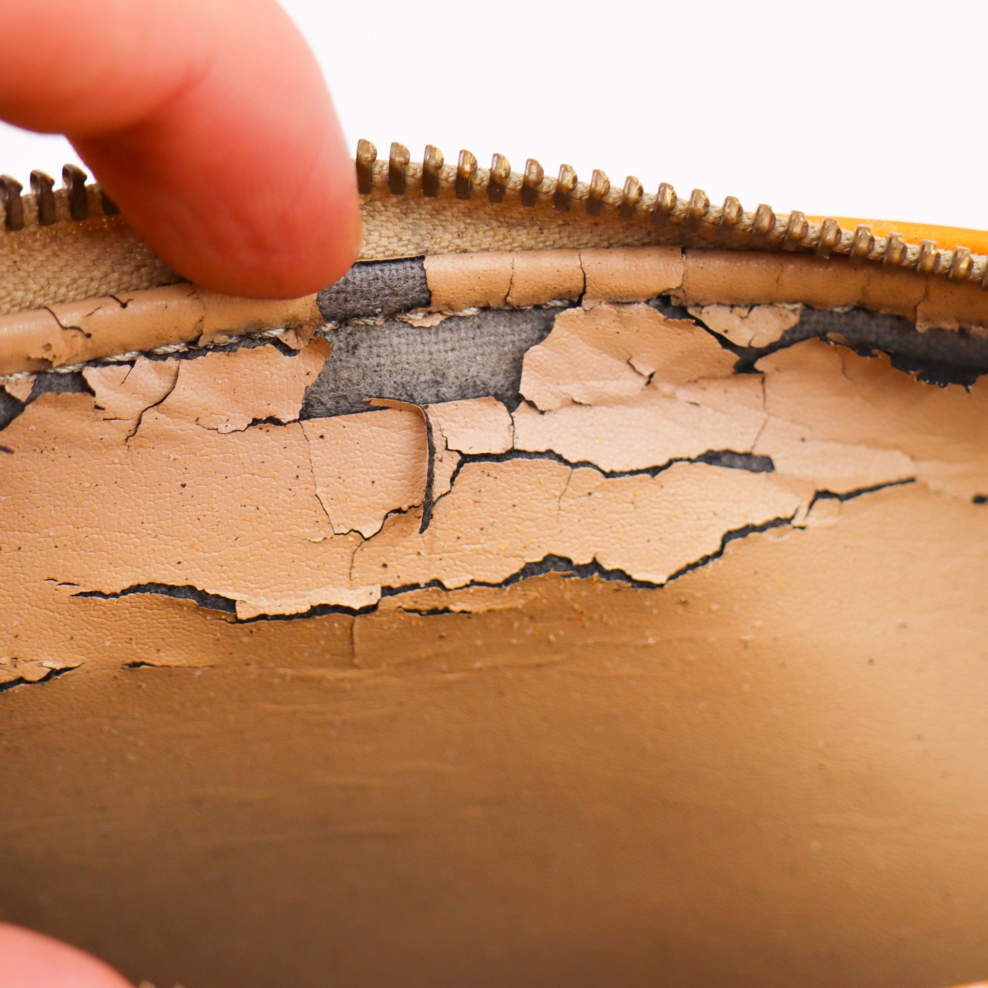 Innenfutter hat starke Abnutzungen und Verfärbungen.