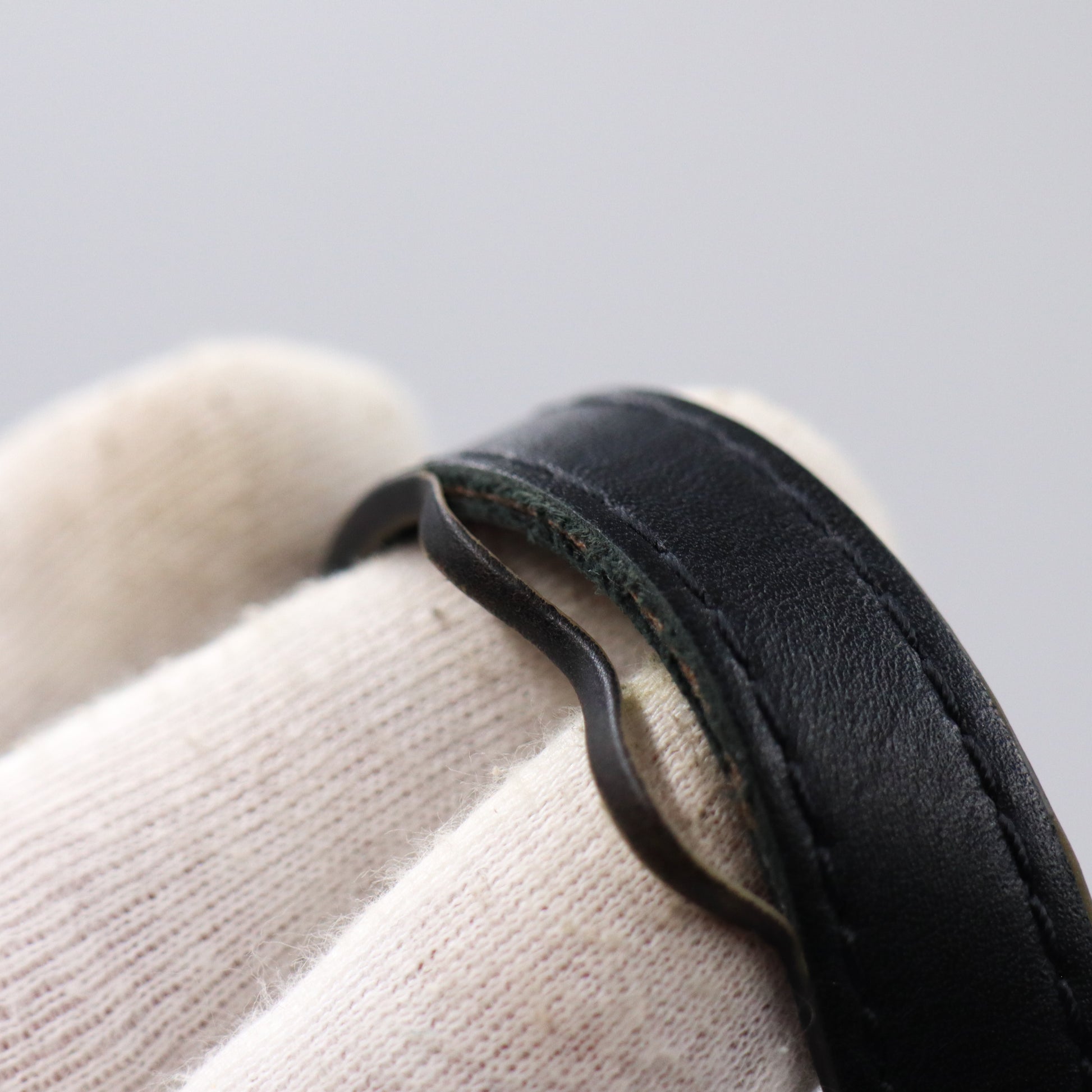 Sehr guter Gebrauchszustand. Leichte Verfärbung und Abnutzung. Leichter Abrieb und Verfärbung am Leder. Leichte Beschädigung am Schultergurt.